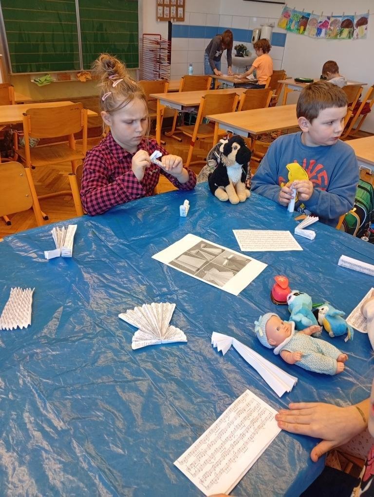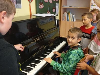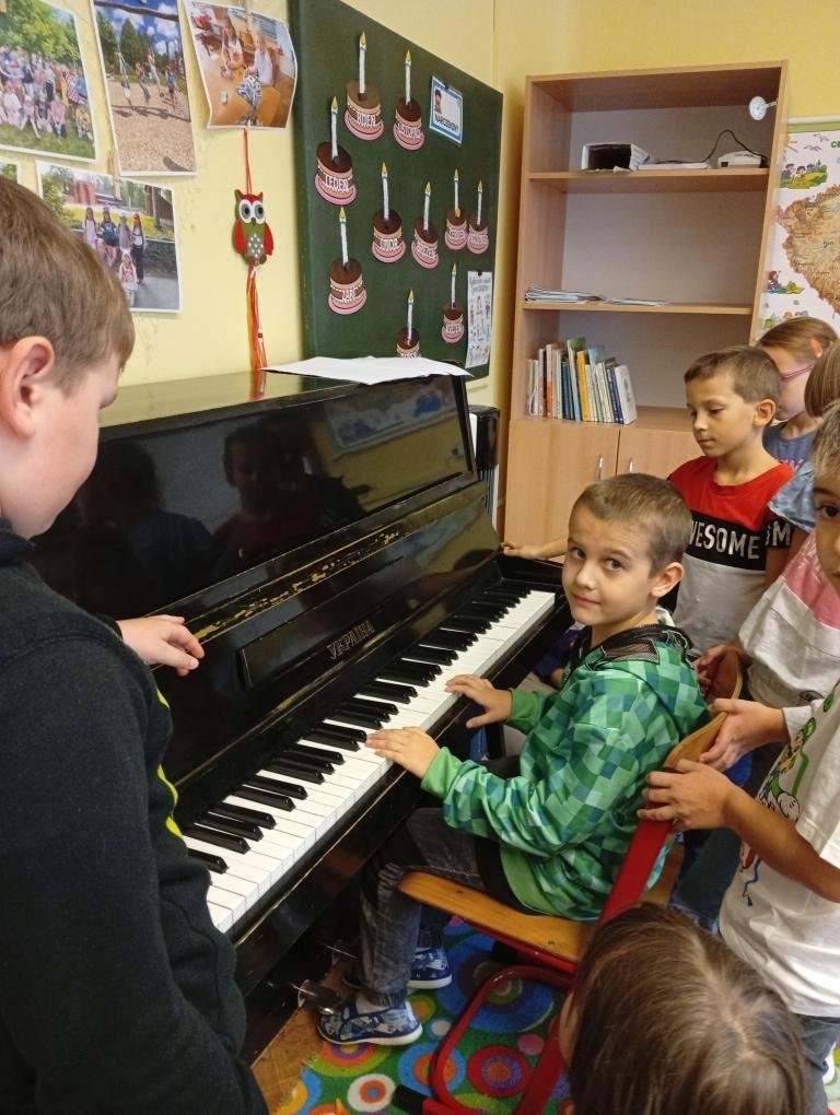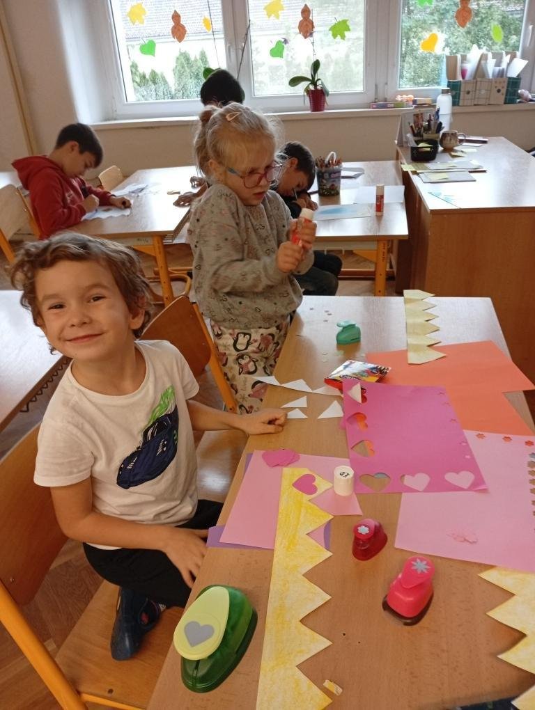 Věnovali jsme se podzimní tvorbě – vyráběli jsme záložky do knih z přírodnin a tvořili podzimní obrázky, například ježky a víly. Připomněli jsme si také Den stromů při návštěvě zámeckého parku, kde si děti stavěly malé domečky pro skřítky. Zároveň jsme během vycházky pozorovali a počítali, kolik různých druhů stromů v našem okolí máme. Navštívili jsme knihovnu, ve které se děti seznámily s jejím prostředím, pravidly a chodem. Příjemným zpestřením byla hudební odpoledne, kdy nám žáci hráli na klavír.