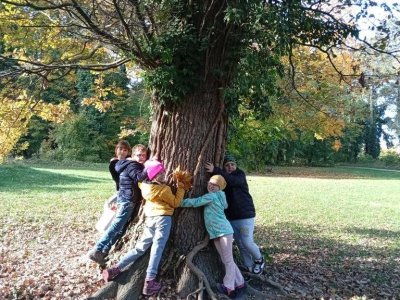 Kromě tvořivých činností a her trávíme hodně času i venku. Chodíme na vycházky, kde pozorujeme přírodu, navštěvujeme školní zahradu i blízké lanové hřiště. Objevujeme různá zákoutí zámeckého parku a velkou zábavu si užíváme také v místním bludišti.