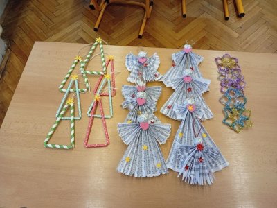 Postupně jsme se začali připravovat také na školní akci Vánoční rozjímání, pro kterou jsme vyráběli různé ozdoby, andílky a věnečky.