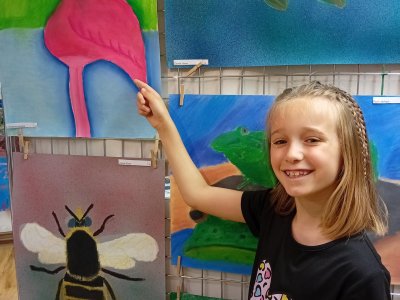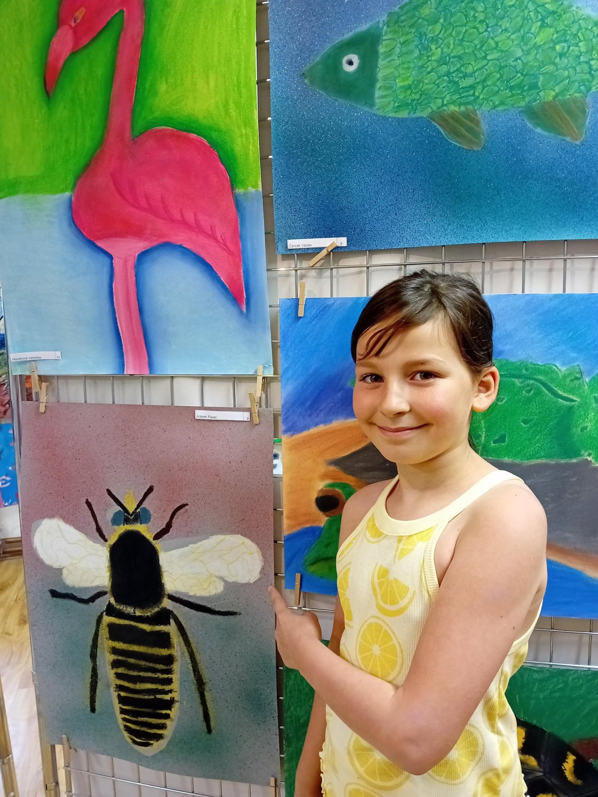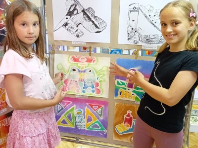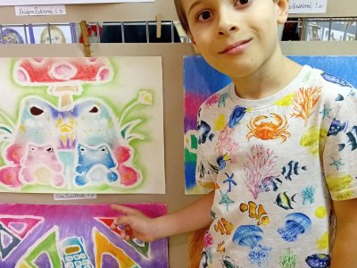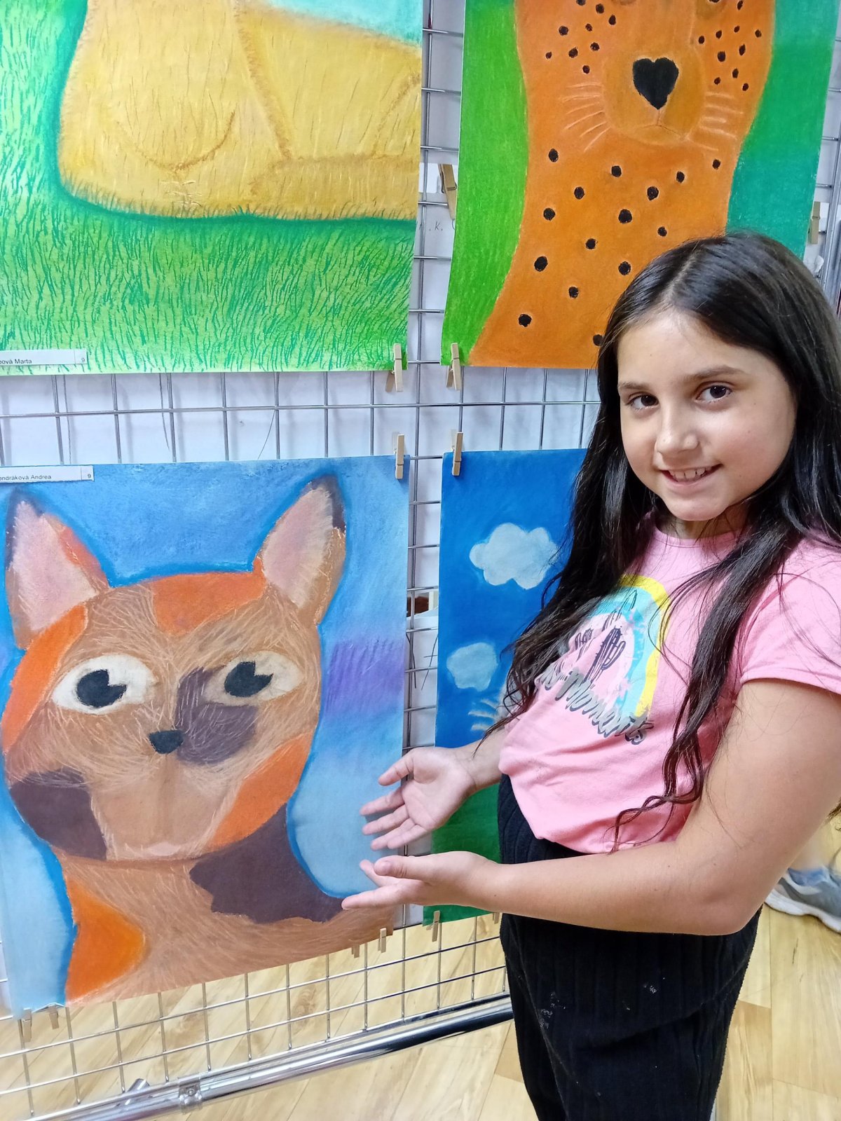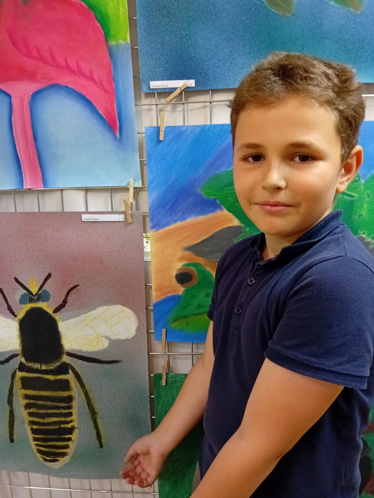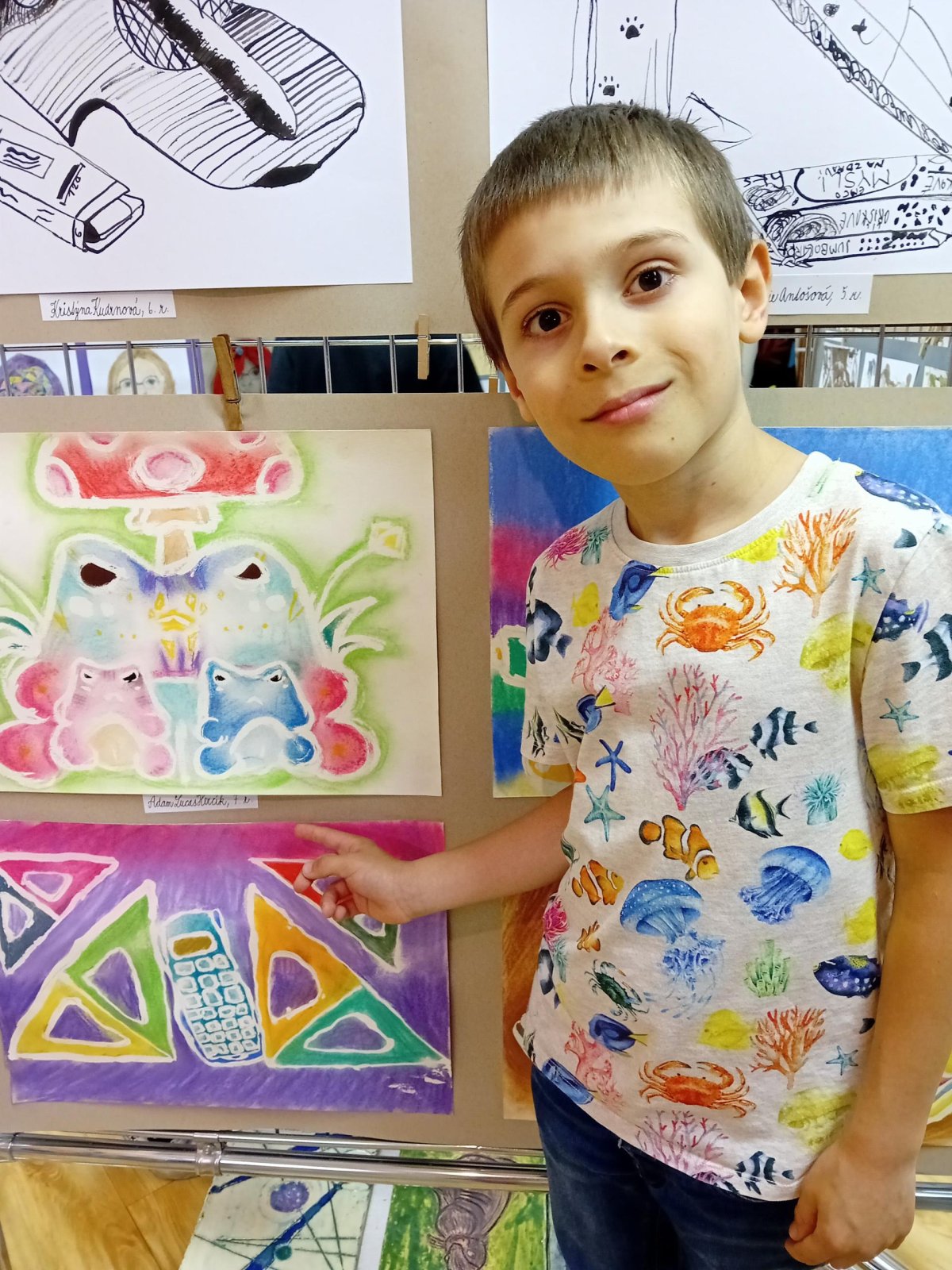 Bylo tady tolik krásných výtvarných prací, až nám oči přecházely. Každý si vybral obrázek, který se mu nejvíc líbil.
