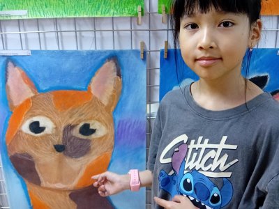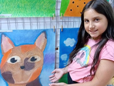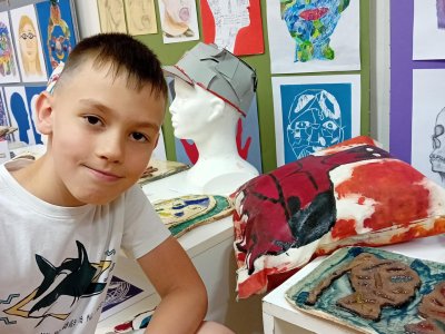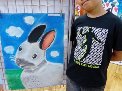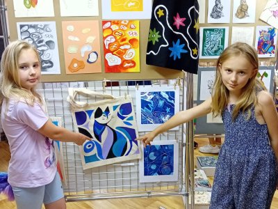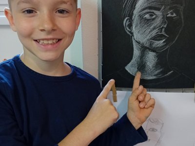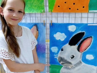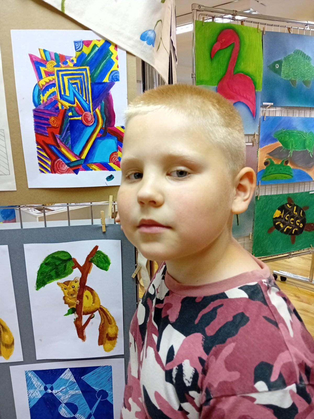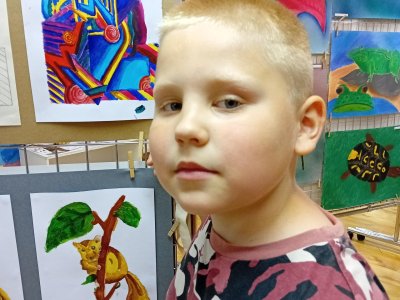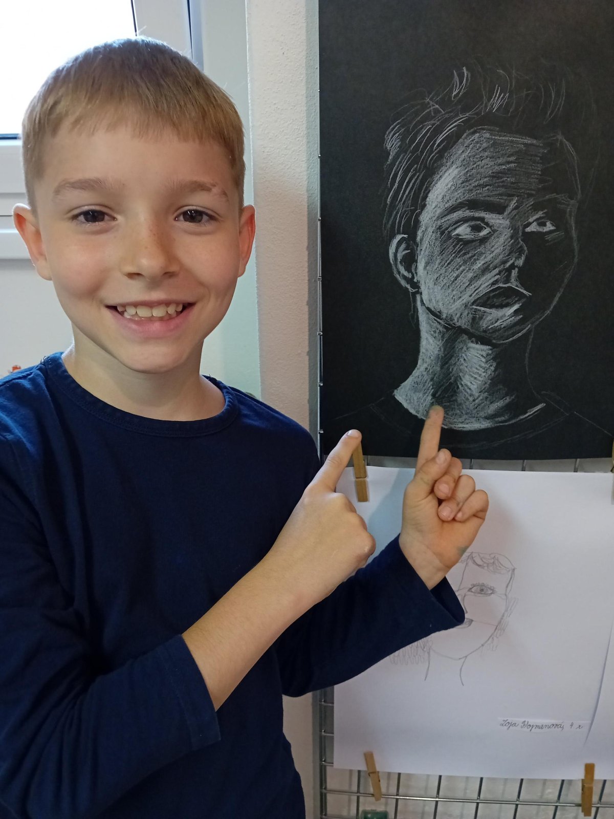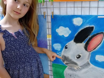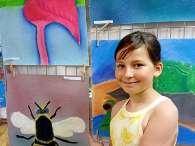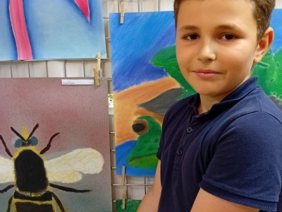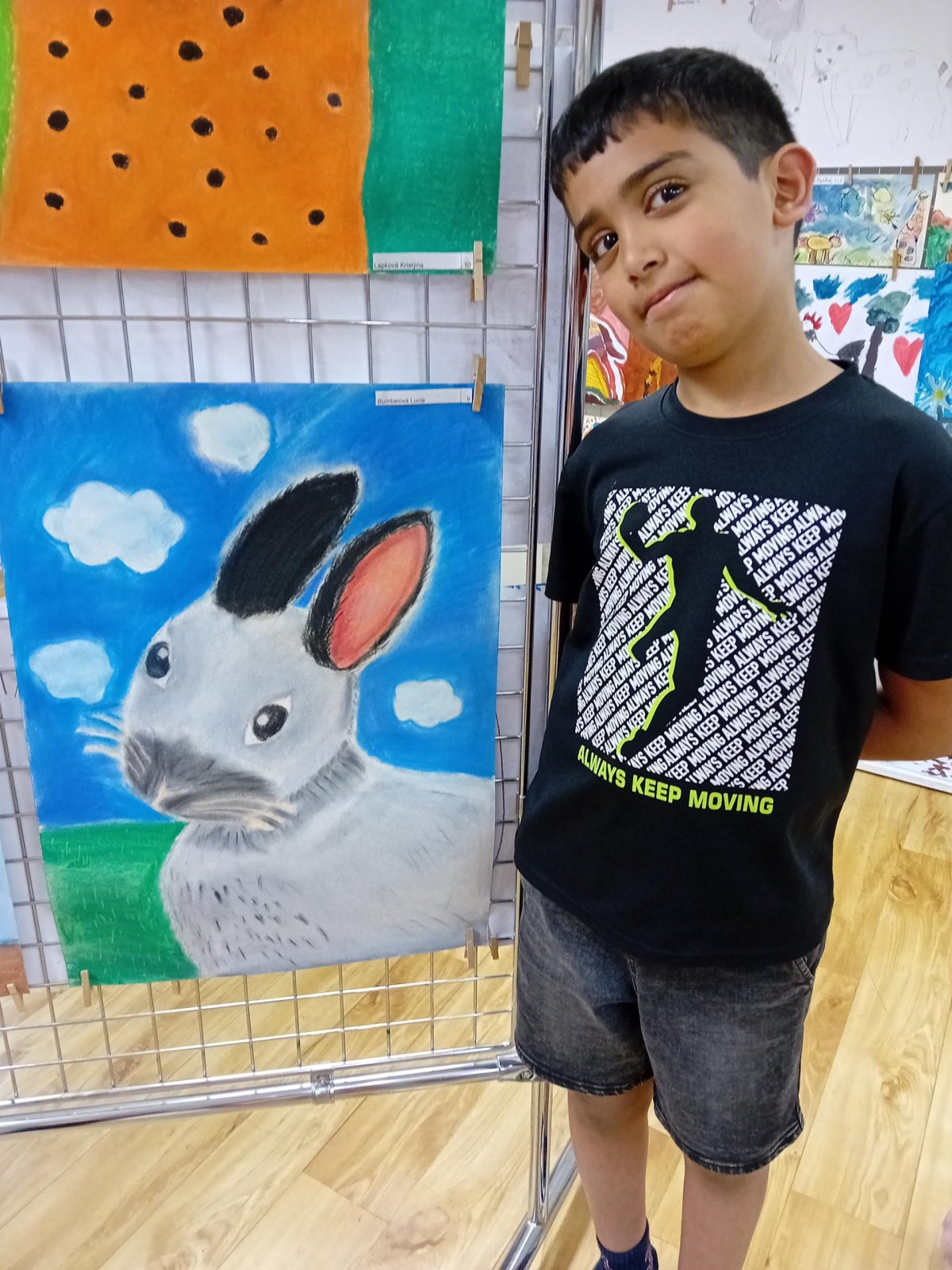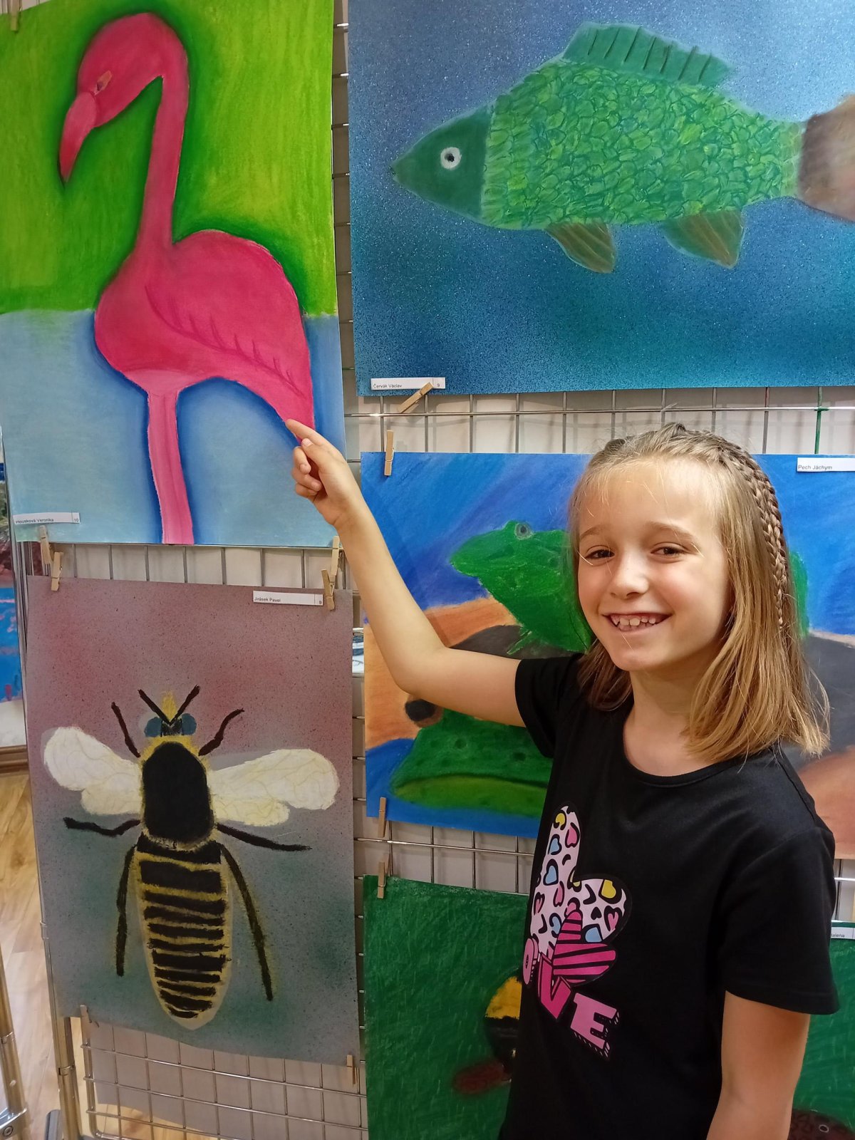 Bylo tady tolik krásných výtvarných prací, až nám oči přecházely. Každý si vybral obrázek, který se mu nejvíc líbil.