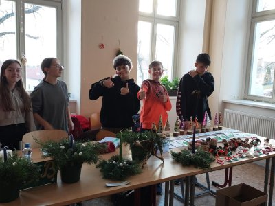 Dne 29. 11. 2024 se na 2. stupni Základní školy Bedřicha Hrozného uskutečnil tradiční VÁNOČNÍ JARMARK. Každá třída vlastnoručně zhotovila výrobky a připravila drobné pohoštění. Po celou dobu akce panovala příjemná, milá a přátelská atmosféra. Škola se v ten okamžik stala místem setkávání se přátel, rodičů a žáků školy. Skloubilo se příjemné s užitečným. Lidé si popovídali, nakoupili výroby a občerstvili se. Podařilo se nám navodit tu správnou pohodovou vánoční náladu. Na závěr jsme se všichni přesunuli na školní zahradu, kde nám paní ředitelka Mgr. Jitka Sedláčková popřála krásné svátky, rozsvítil se vánoční stromeček a zazpívali jsme si s živou kapelou vánoční písně. Za hudební doprovod patří velký dík profesionální kapele Comedy&Beat (www.comedy.cz), díky níž jsme navodili tu správnou vánoční atmosféru. Dále mi závěrem dovolte poděkovat místní firmě Naše kytky, s. r. o. za sponzorský dar v podobě vánočního stromečku. V neposlední řadě děkuji všem žákům, kteří věnovali velké úsilí a čas, aby se na tuto akci připravili.