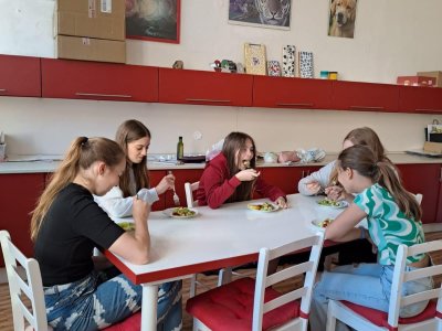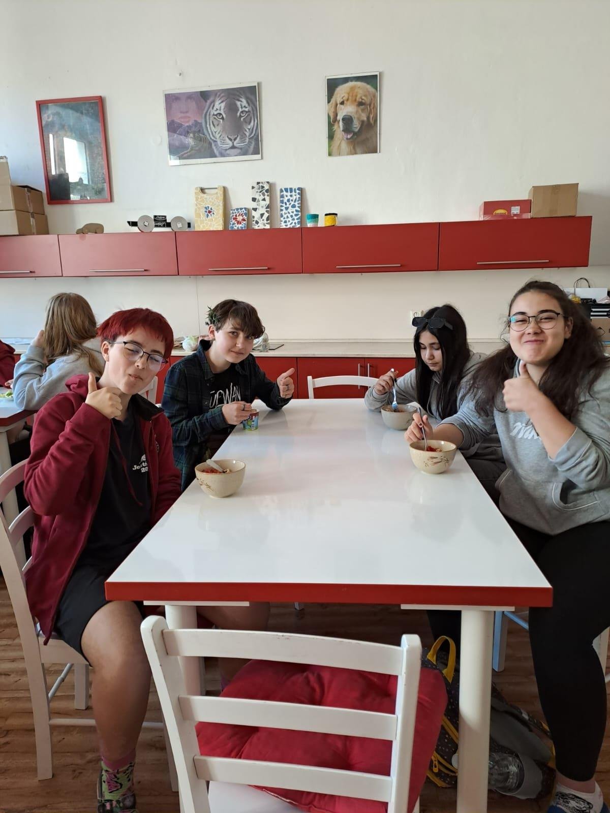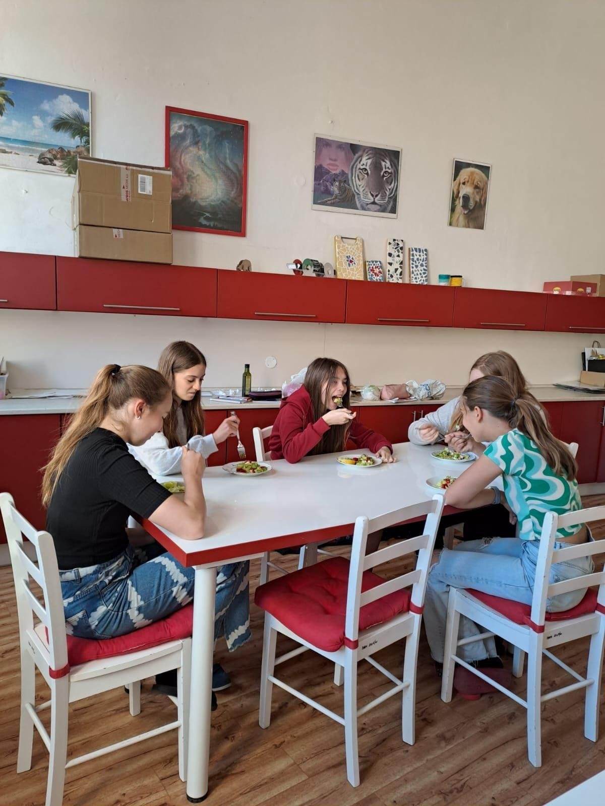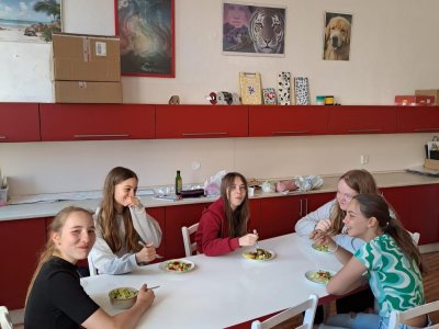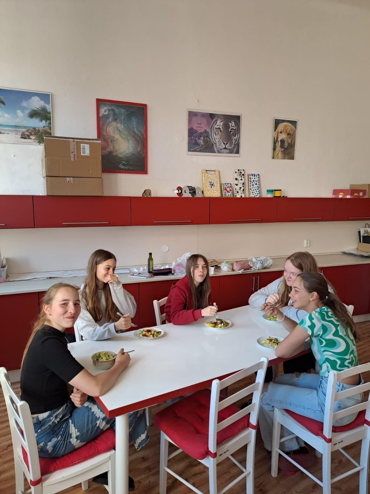 Dne 30. 5. 2023 jsme se s dívkami pustily o Pč do přípravy chutné svačinky. Děvčata si ve skupinkách donesla potřebné suroviny a ve školní kuchyňce z nich připravila výborné saláty :-)